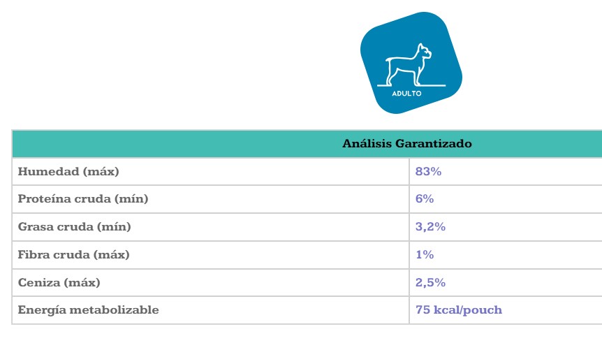 Agua suficiente para proceso, hígado de bovino congelado, carne de pollo congelada, carne de bovino congelada, carne de pato congelada, harina de trigo, almidón modificado, hidrolizado de proteína de pollo, levadura roja en polvo, carragenina y cloruro de sodio.