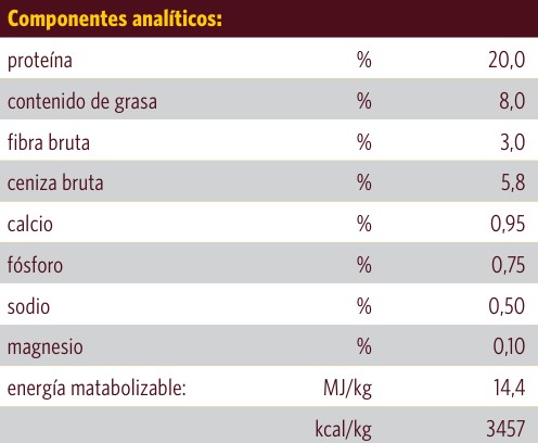 Para perros maduros: un alimento especial desarrollado para aportarles vitalidad, incluso en edades más avanzadas. El contenido reducido de proteínas y grasa favorece la función metabólica. Esta receta equilibrada y sumamente tolerable contiene valiosos antioxidantes que combaten el envejecimiento de las células.