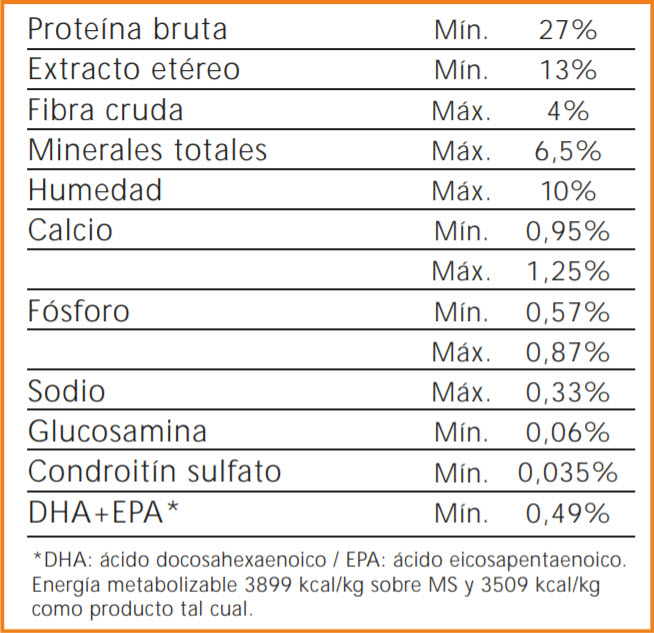 El condroitín sulfato y la glucosamina contribuyen con el mantenimiento del sistema osteoarticular del perro adulto maduro. Estos condroprotectores favorecen la hidratación y nutrición del cartílago articular, proporcionándole mayor elasticidad y resistencia.