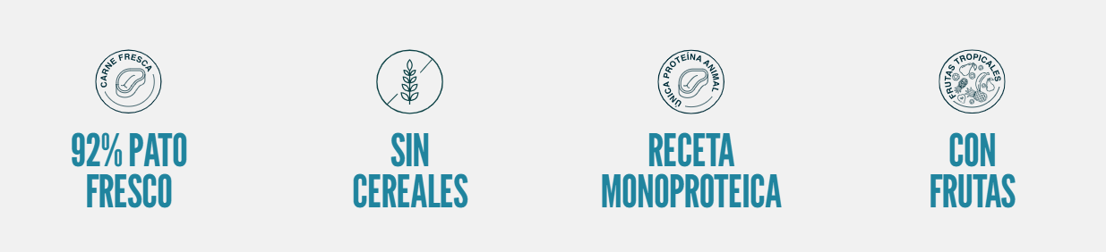 Pato (carne) (92%), kiwi (2%), fresas (2%), romero, sustancias minerales, xilosa.