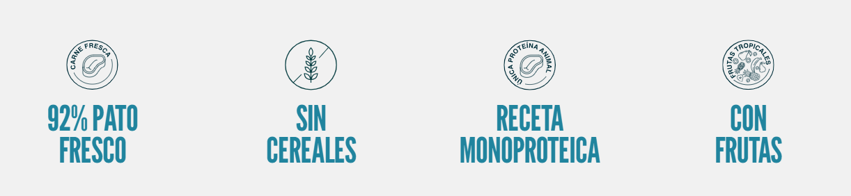 Pato (carne) (92%), kiwi (2%), fresas (2%), romero, sustancias minerales, xilosa.